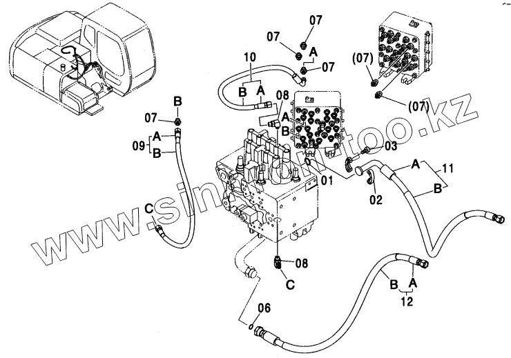Каталог запасных частей к технике: Hitachi ZX-110. MAIN PIPING (OFFSET BOOM)