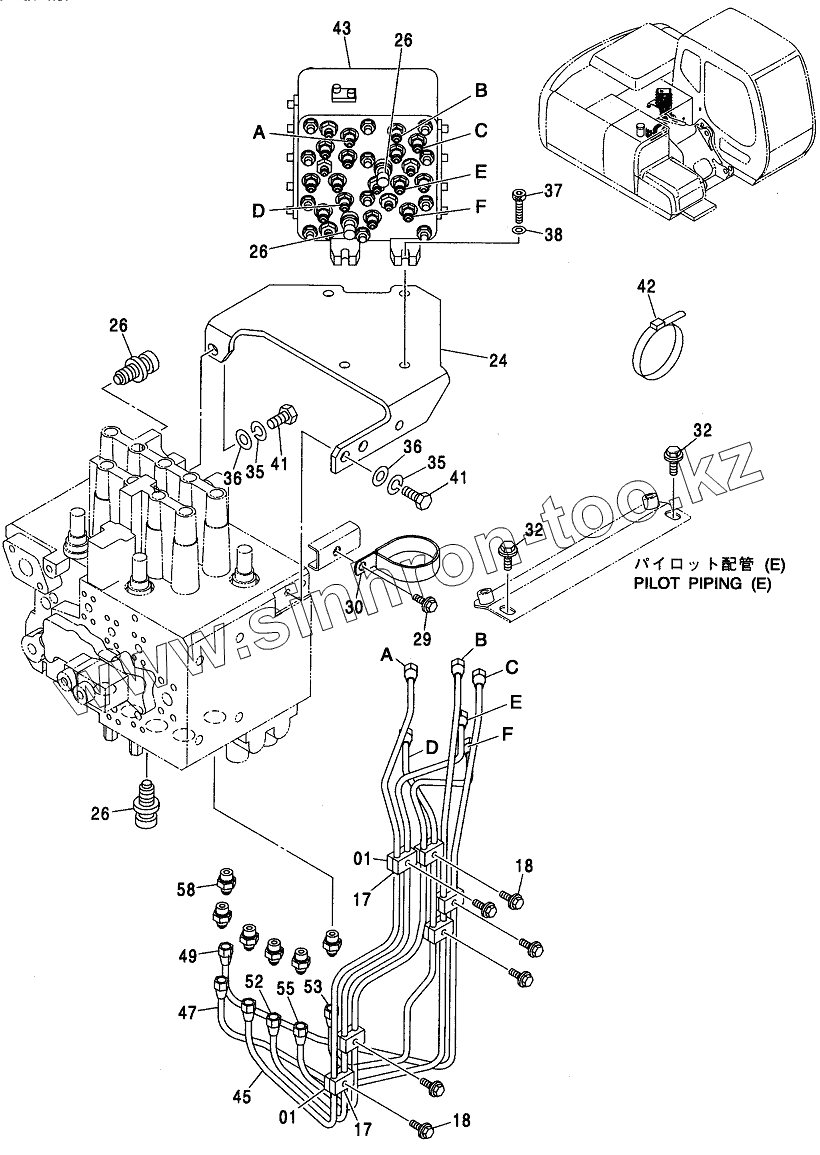 Каталог запасных частей к технике: Hitachi ZX-110. PILOT PIPING (D-1)