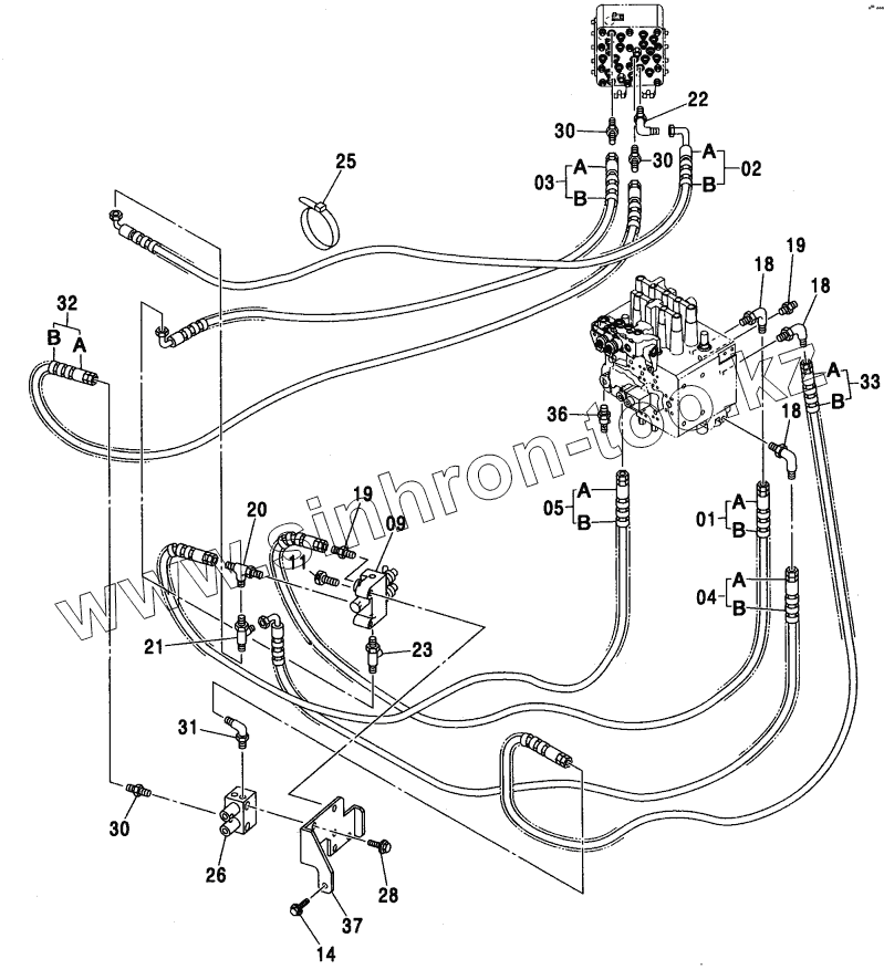 Каталог запасных частей к технике: Hitachi ZX-110. PILOT PIPING (FLOW RATE SELECTOR)
