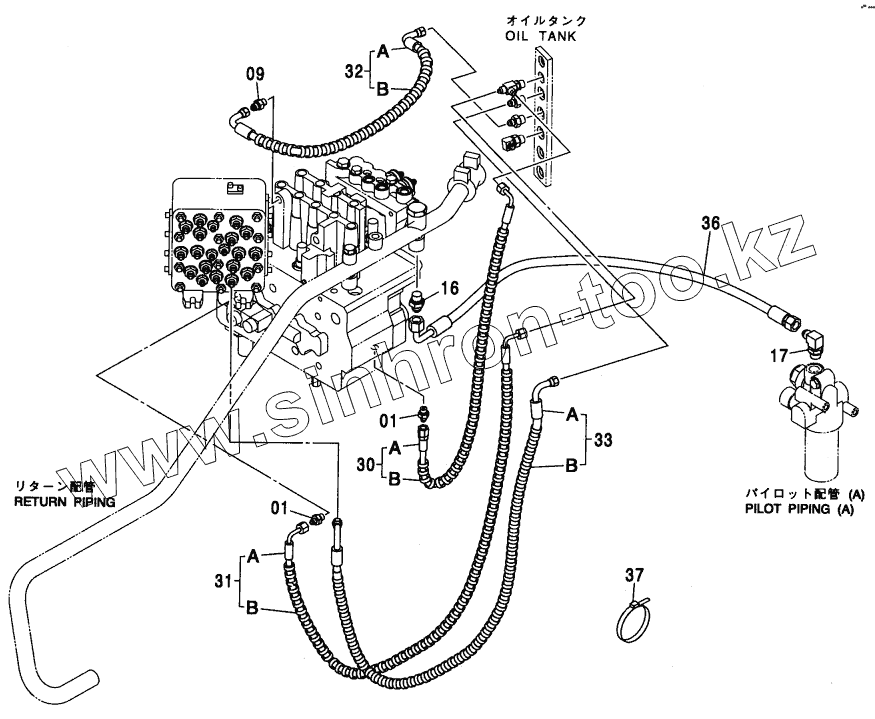 Каталог запасных частей к технике: Hitachi ZX-110. PILOT PIPING (I-1)