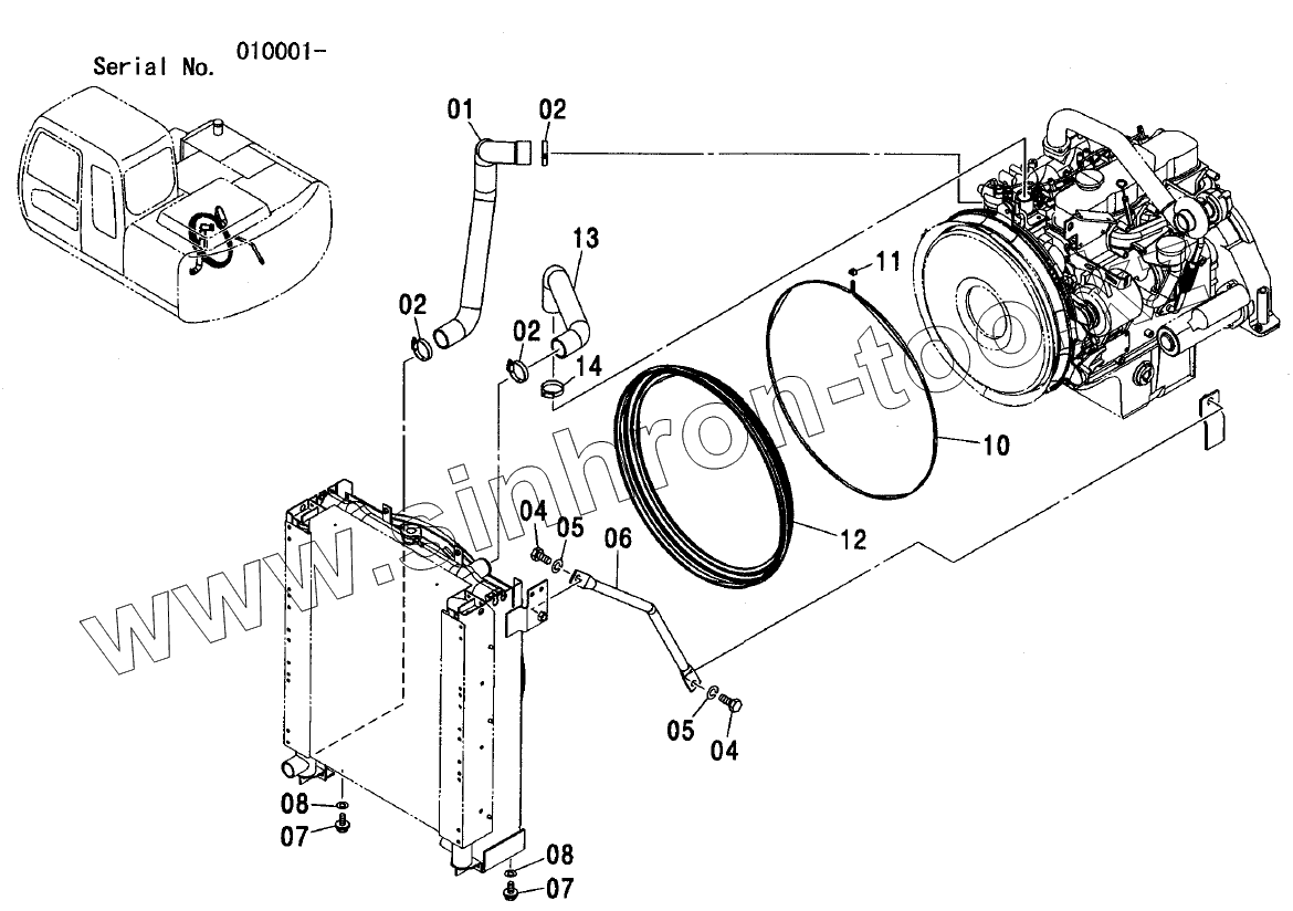 Каталог запасных частей к технике: Hitachi ZX-110. RADIATOR SUPPORT