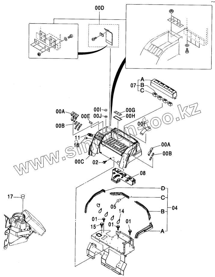 Каталог запасных частей к технике: Hitachi ZX-110. REAR BOX (HEATER)