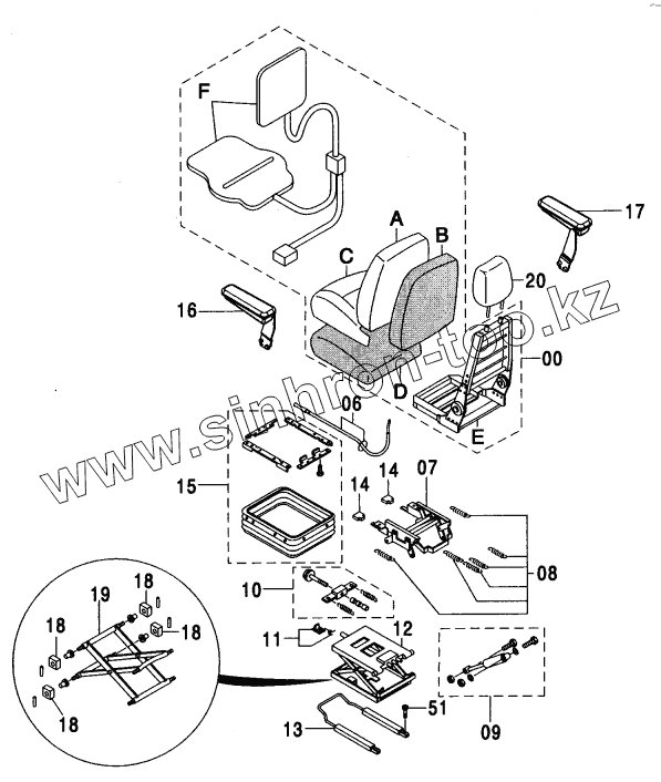 Каталог запасных частей к технике: Hitachi ZX-110. SUSPENSION SEAT (WITH HEATER)