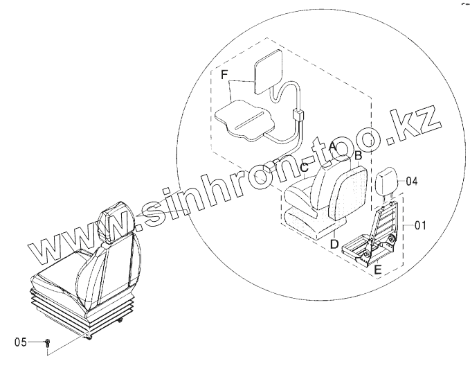 Каталог запасных частей к технике: Hitachi ZX-160W. AIR-SUSPENSION SEAT (WITH HEATER)