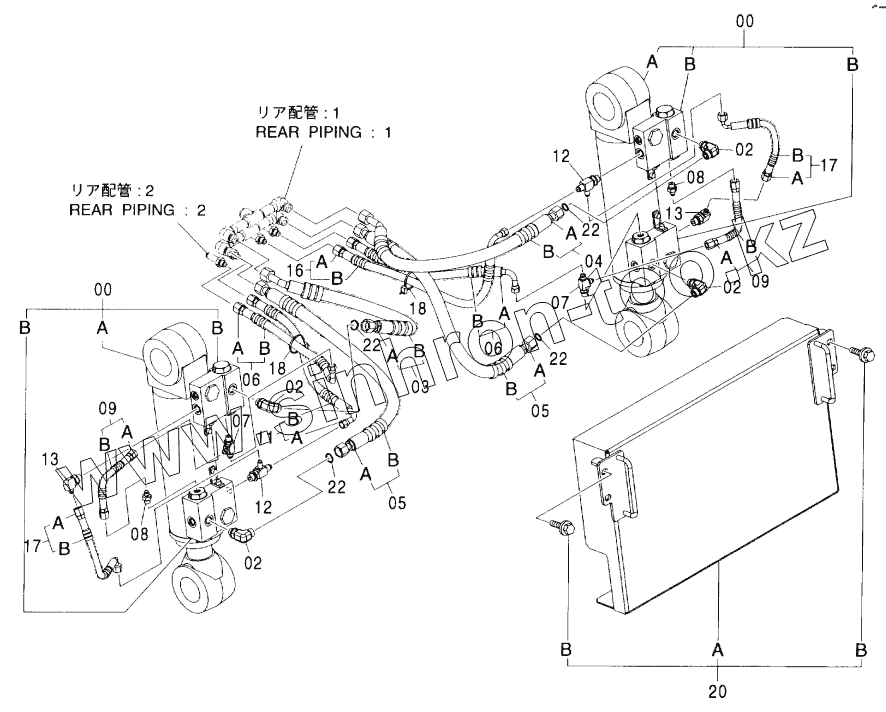 Каталог запасных частей к технике: Hitachi ZX-160W. BLADE PIPING