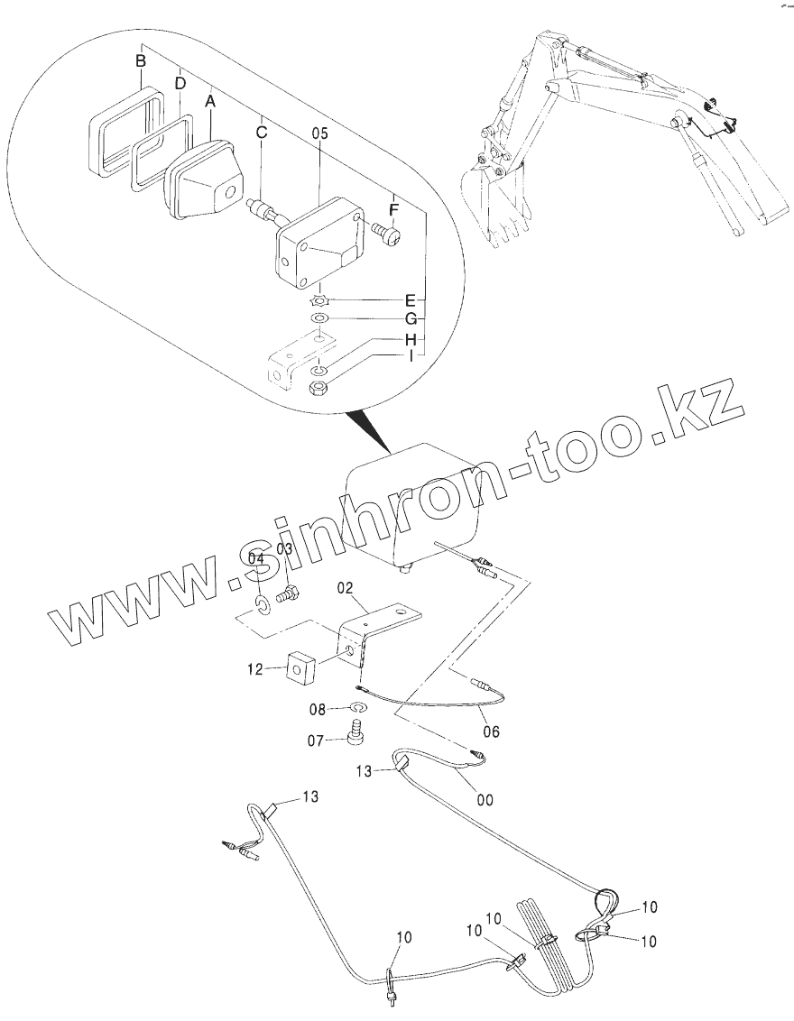 Каталог запасных частей к технике: Hitachi ZX-160W. BOOM LIGHT (R)