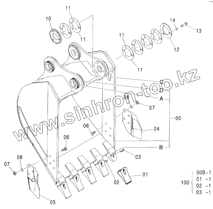 Каталог запасных частей к технике: Hitachi ZX-160W. BUCKET 0.70 (JIS 94)