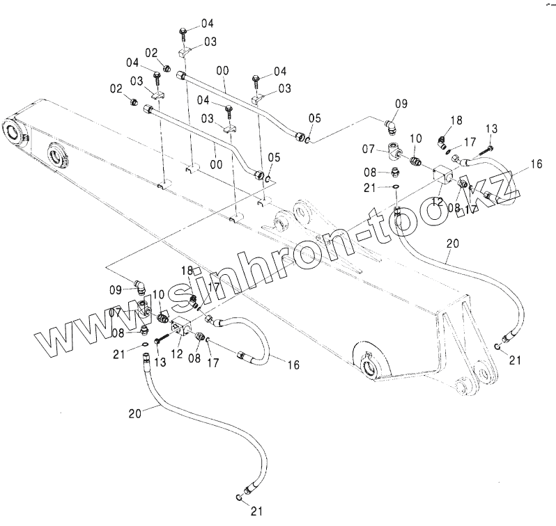 Каталог запасных частей к технике: Hitachi ZX-160W. CLAMSHELL PIPING (3.10M ARM) <EU>