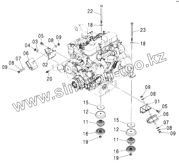 Каталог запасных частей к технике: Hitachi ZX-160W. ENGINE SUPPORT