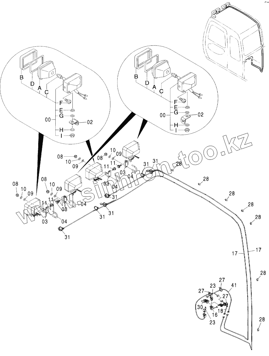 Каталог запасных частей к технике: Hitachi ZX-160W. FRONT HEAD LAMP (4 LAMP)