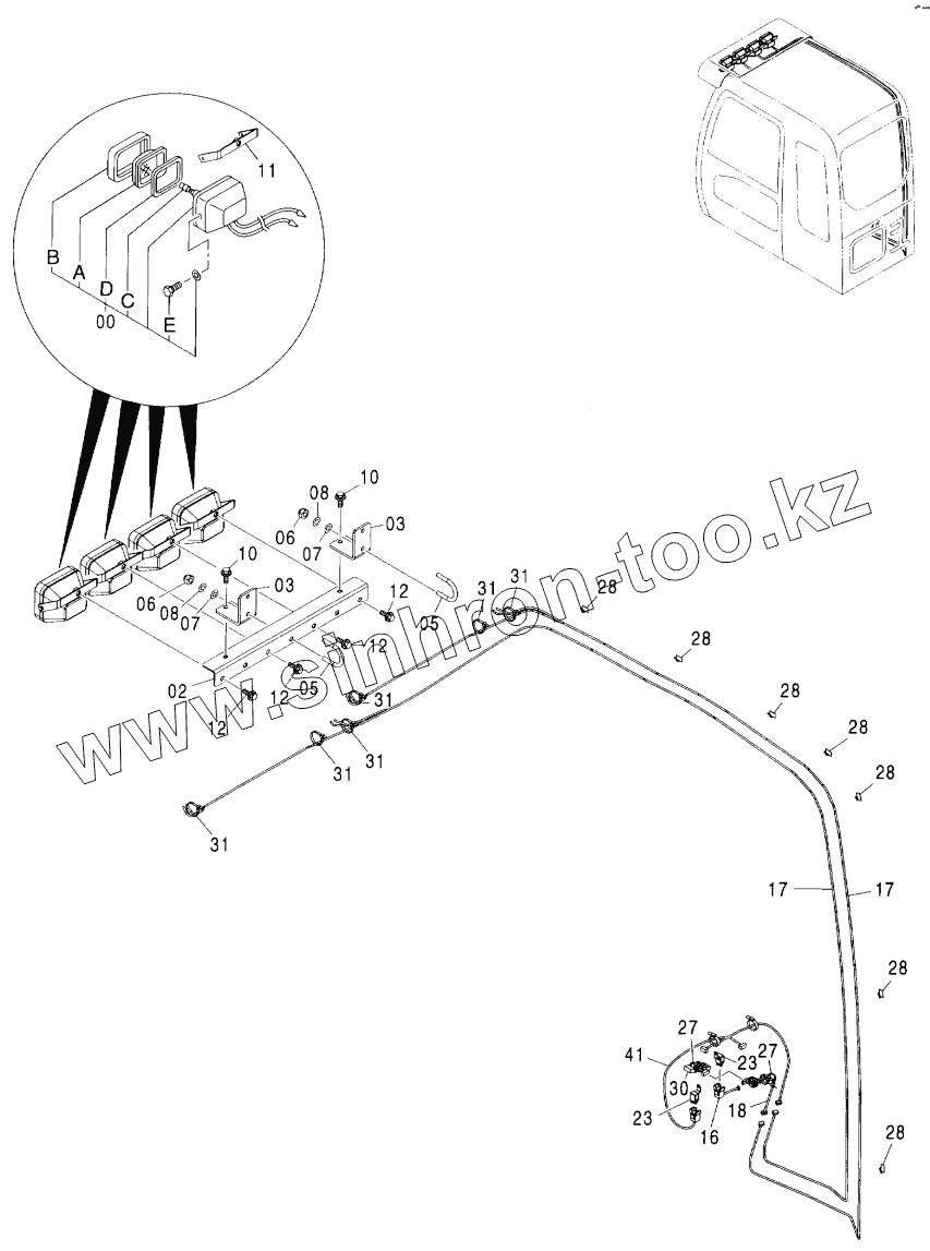 Каталог запасных частей к технике: Hitachi ZX-160W. FRONT HEAD LAMP (4 LAMP WITH SUNSHADE)