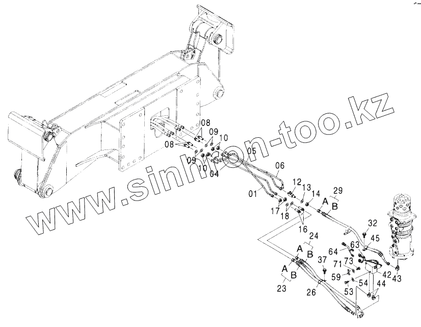 Каталог запасных частей к технике: Hitachi ZX-160W. FRONT PIPING
