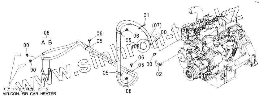 Каталог запасных частей к технике: Hitachi ZX-160W. HEATER PIPING