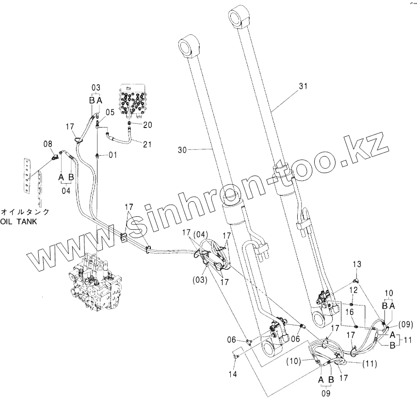 Каталог запасных частей к технике: Hitachi ZX-160W. HOSE RUPTURE VALVE PIPING (BOOM) (2P-B00M)