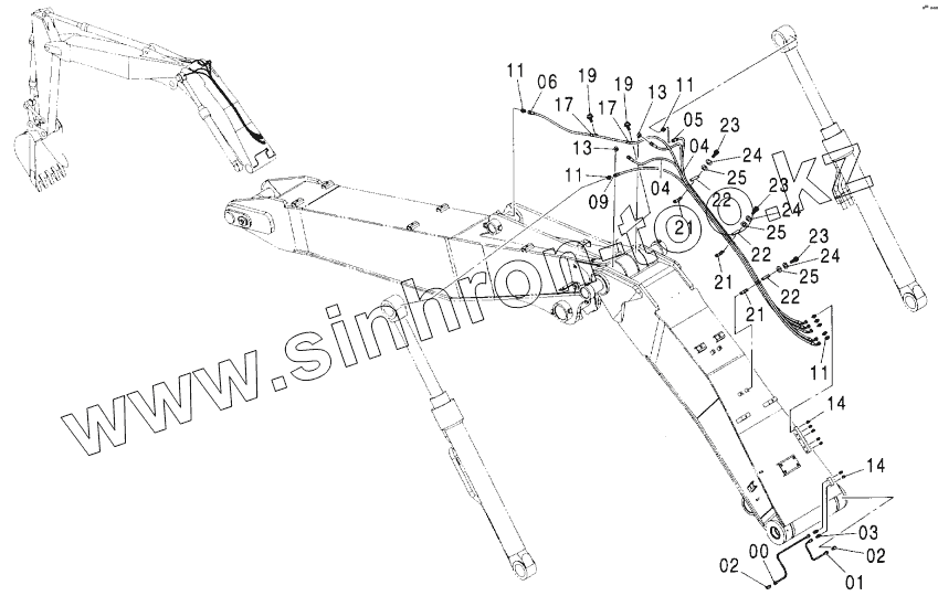 Каталог запасных частей к технике: Hitachi ZX-160W. LUBRICATE PIPING (2P-B00NI)
