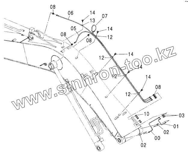 Каталог запасных частей к технике: Hitachi ZX-160W. LUBRICATE PIPING (MONO BOOM)