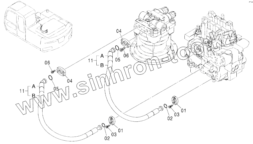 Каталог запасных частей к технике: Hitachi ZX-160W. MAIN PIPING (3)