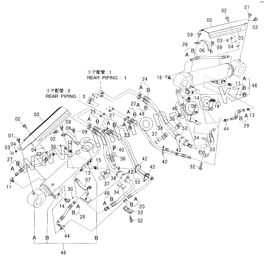 Каталог запасных частей к технике: Hitachi ZX-160W. OUTRIGER PIPING (CARRIER)