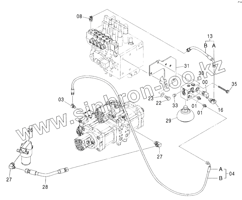 Каталог запасных частей к технике: Hitachi ZX-160W. PILOT PIPING (A)