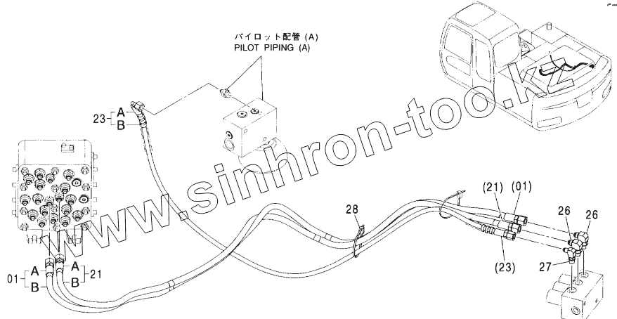 Каталог запасных частей к технике: Hitachi ZX-160W. PILOT PIPING (C-2)