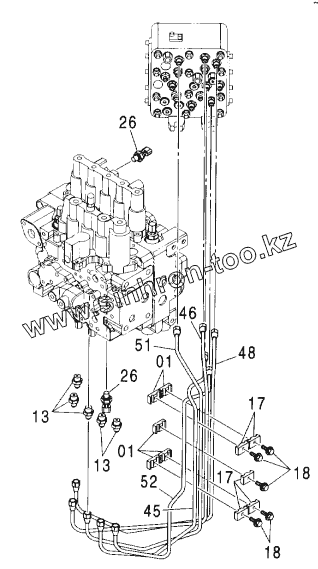 Каталог запасных частей к технике: Hitachi ZX-160W. PILOT PIPING (E-1)