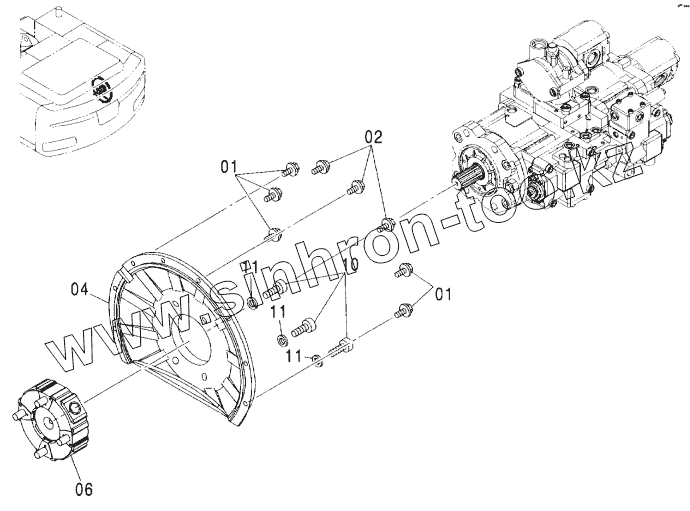 Каталог запасных частей к технике: Hitachi ZX-160W. PUMP DEVICE SUPPORT