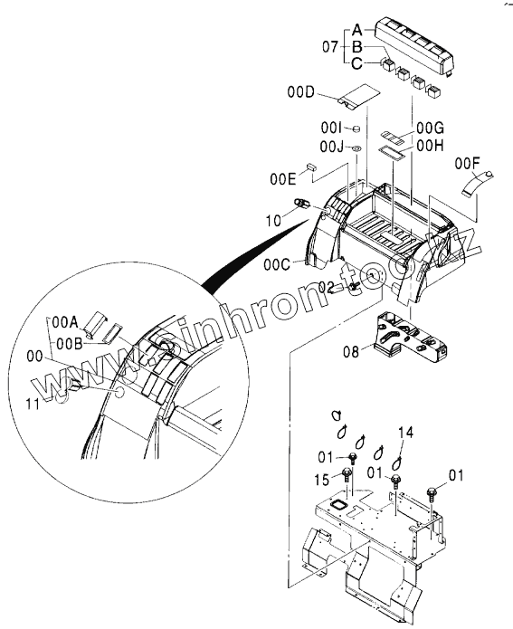 Каталог запасных частей к технике: Hitachi ZX-160W. REAR BOX (12V POWER SUPPLY)