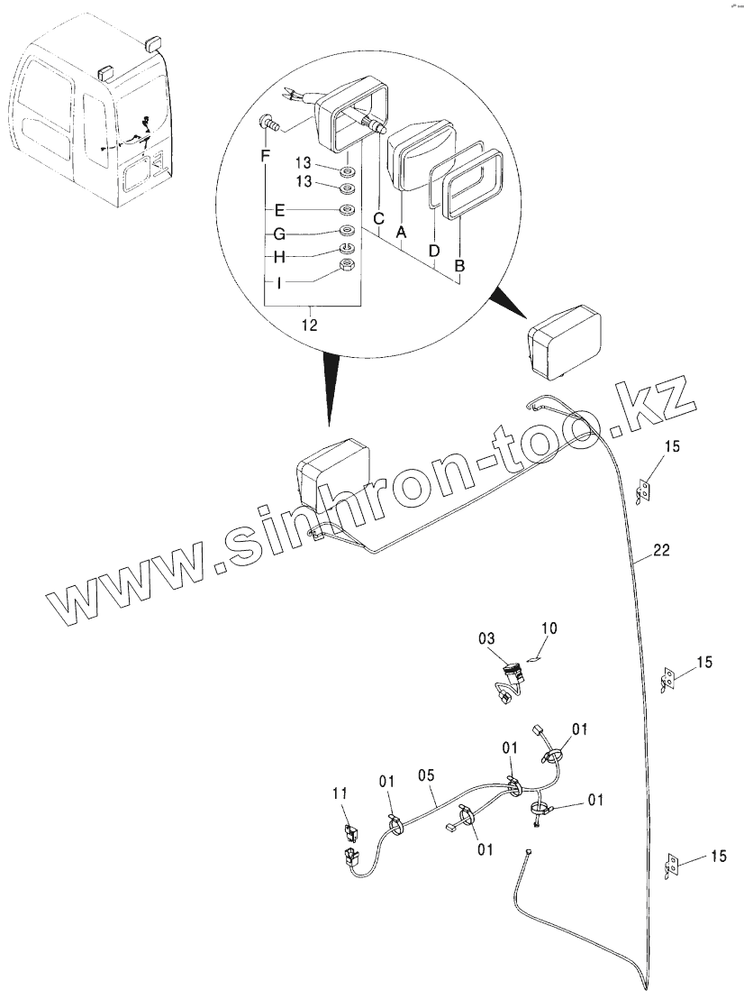 Каталог запасных частей к технике: Hitachi ZX-160W. REAR HEAD LAMP (2 LAMP)