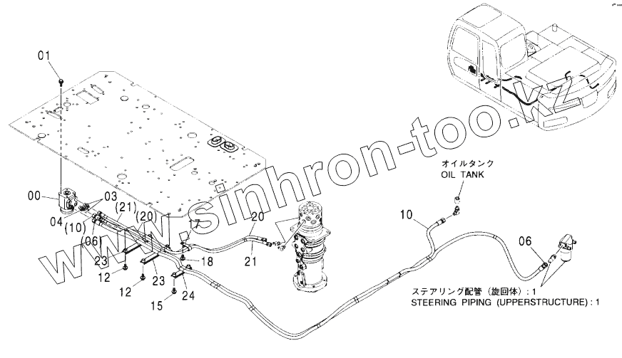 Каталог запасных частей к технике: Hitachi ZX-160W. STEERING PIPING (UPPERSTRUCTURE)