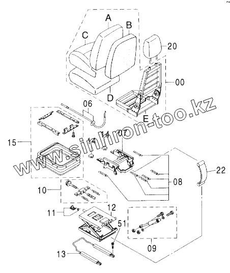 Каталог запасных частей к технике: Hitachi ZX-160W. SUSPENSION SEAT (WITHOUT HEATER)