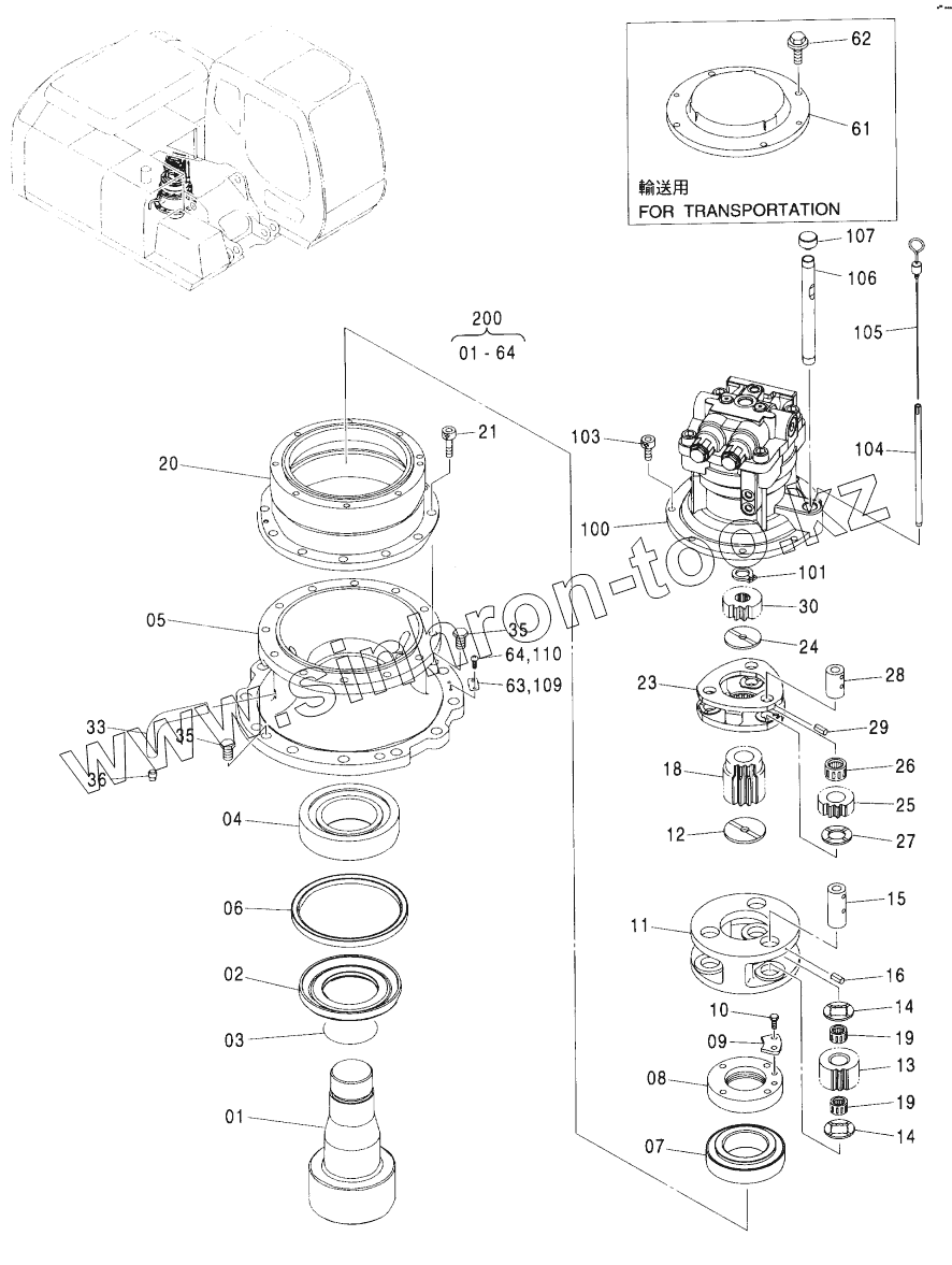 Каталог запасных частей к технике: Hitachi ZX-160W. SWING DEVICE