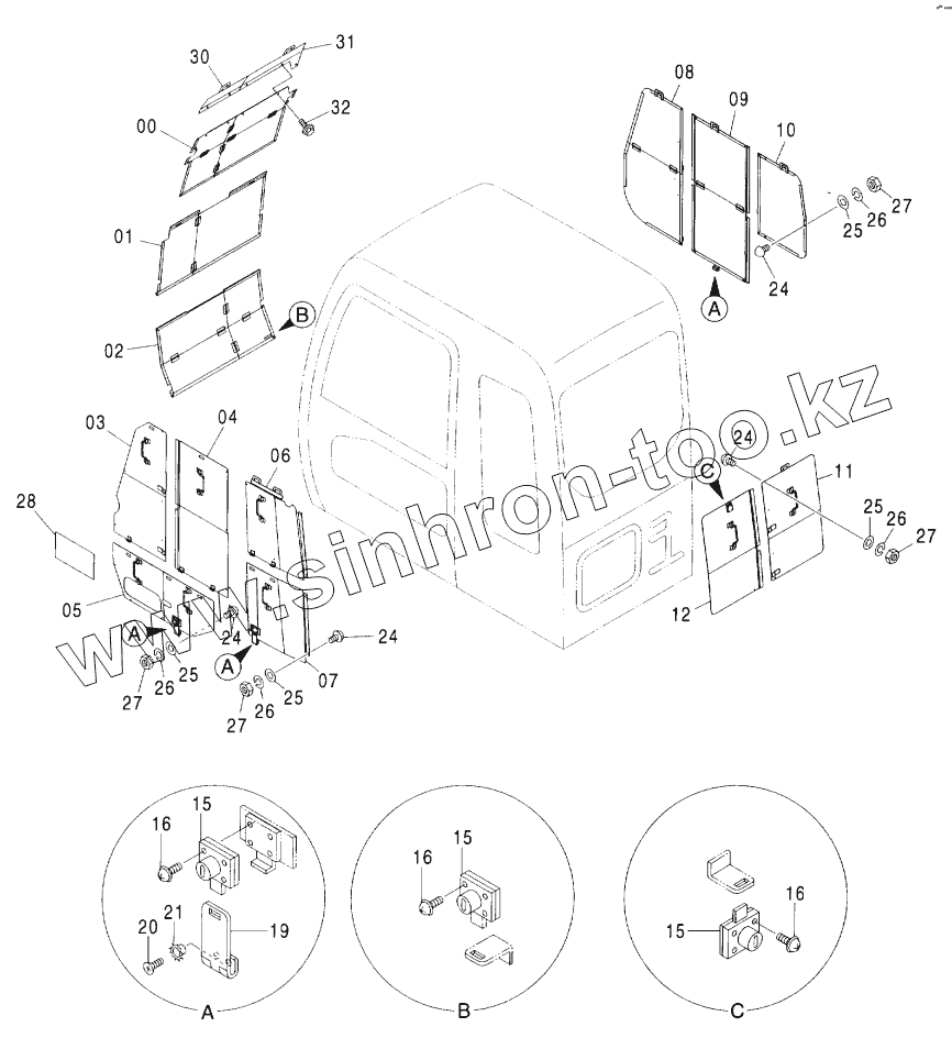 Каталог запасных частей к технике: Hitachi ZX-160W. WINDOW GUARD