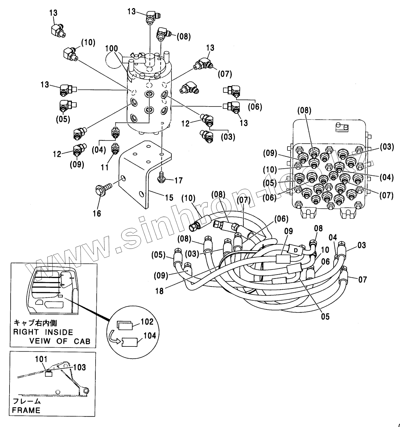 Каталог запасных частей к технике: Hitachi ZX-200. 4 WAY MULT I LEVER PIPING (STD)