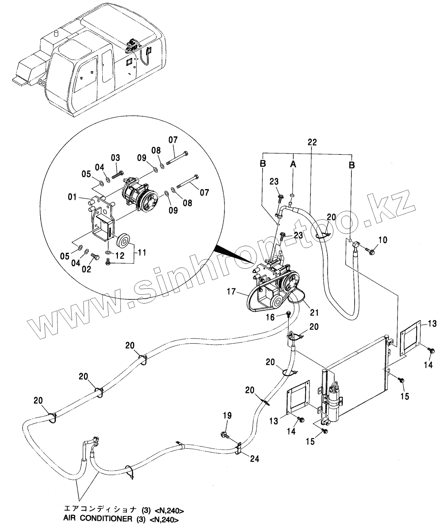 Каталог запасных частей к технике: Hitachi ZX-200. AIR CONDITIONER (2) <N,240>