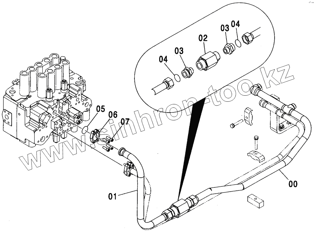 Каталог запасных частей к технике: Hitachi ZX-200. BOOM BOTTOM PIPING (RIVER MAINTENANCE)