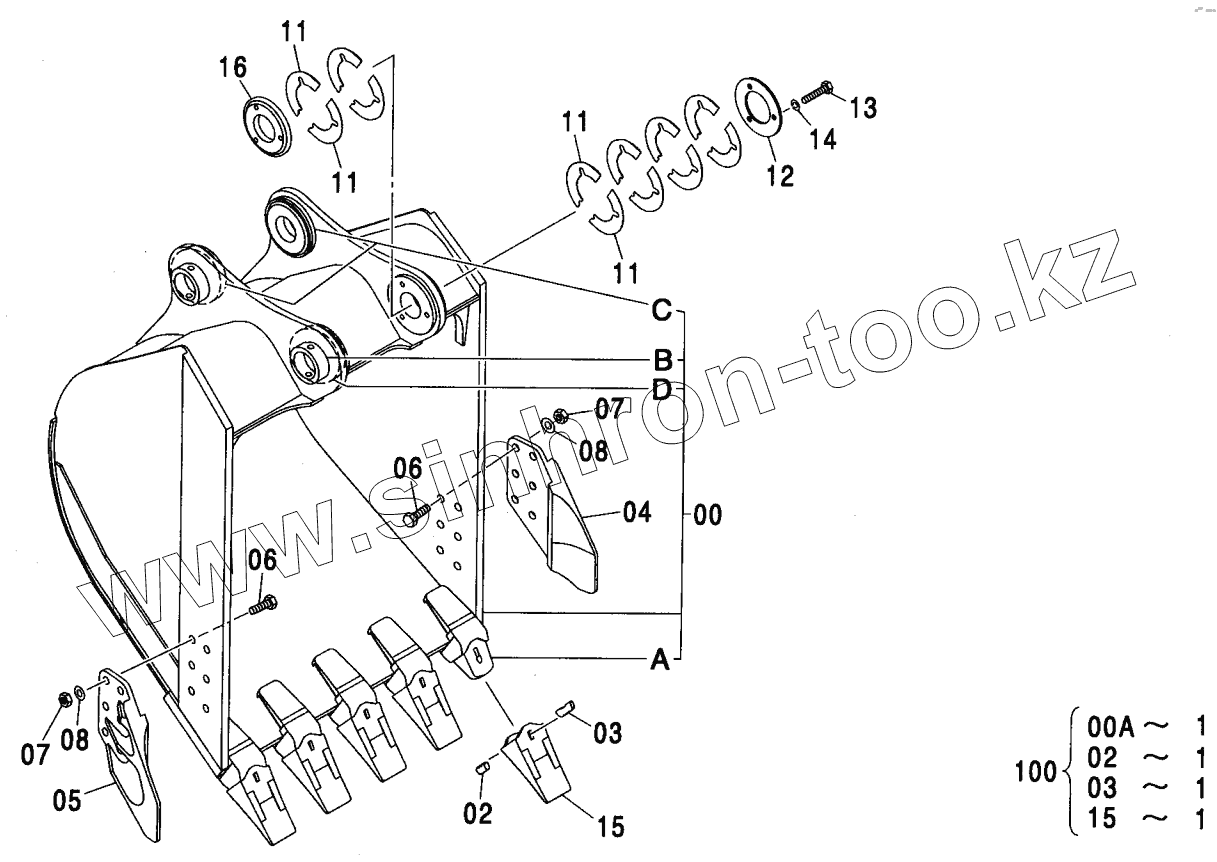 Каталог запасных частей к технике: Hitachi ZX-200. BUCKET 0.8 (JIS 94)