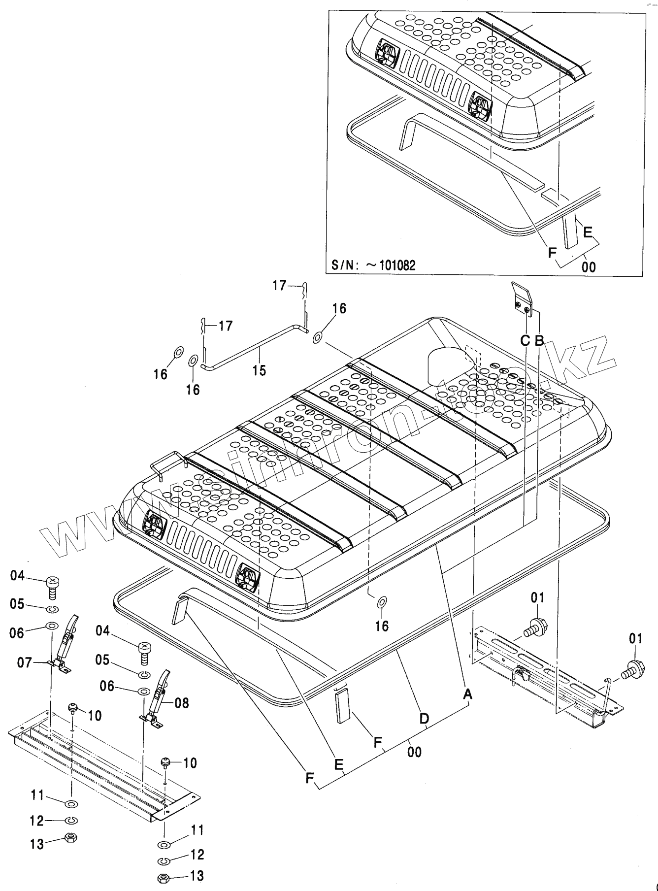 Каталог запасных частей к технике: Hitachi ZX-200. ENGINE COVER <200, E, 210, H, K>