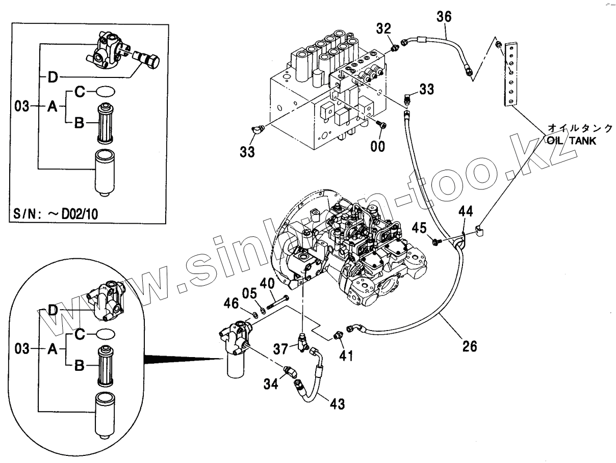 Каталог запасных частей к технике: Hitachi ZX-200. PILOT PIPING (A) <200, 210, H, K>
