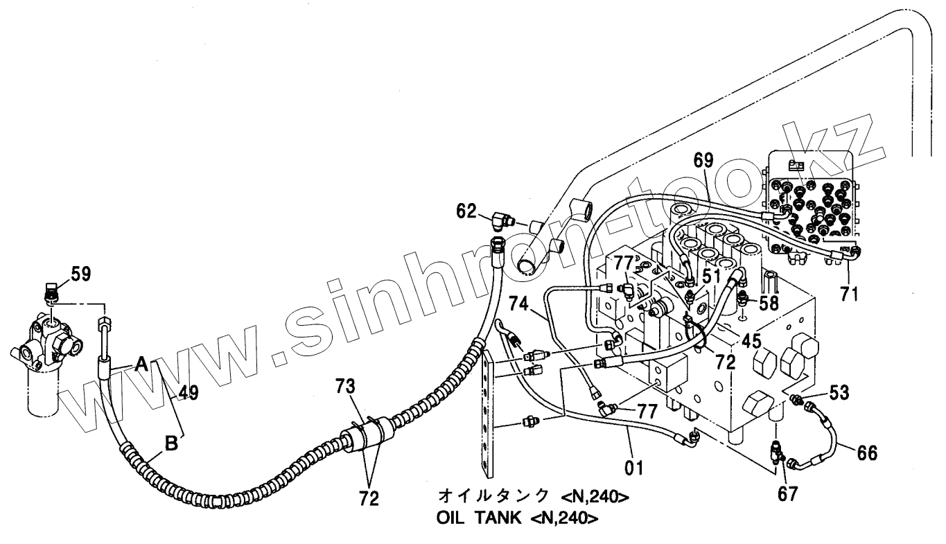 Каталог запасных частей к технике: Hitachi ZX-200. PILOT PIPING (I-2) <N,240>