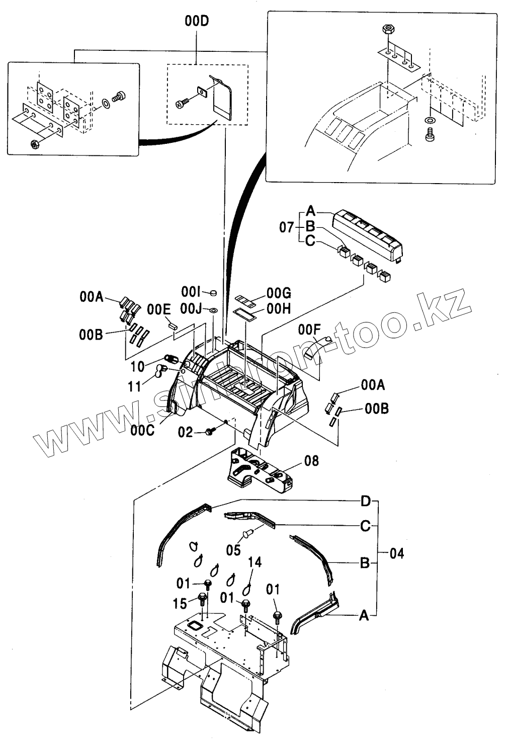 Каталог запасных частей к технике: Hitachi ZX-200. REAR BOX (12V POWER SUPPLY)