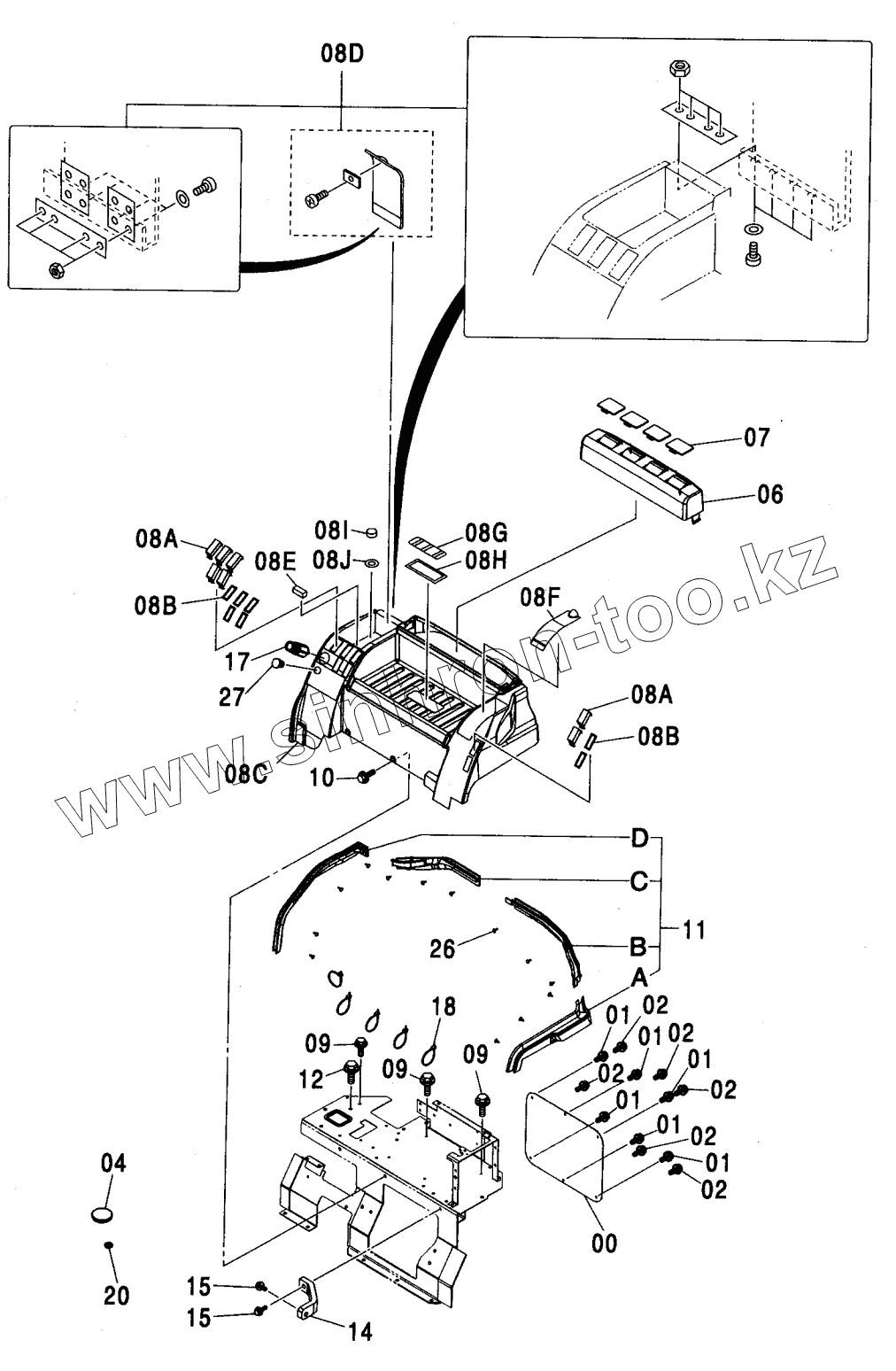 Каталог запасных частей к технике: Hitachi ZX-200. REAR BOX (HEATER LESS)