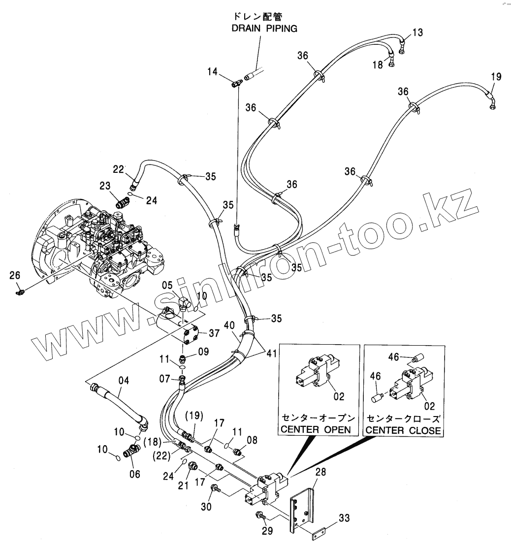 Каталог запасных частей к технике: Hitachi ZX-230. ADD. GEAR PUMP PIPING (30L)