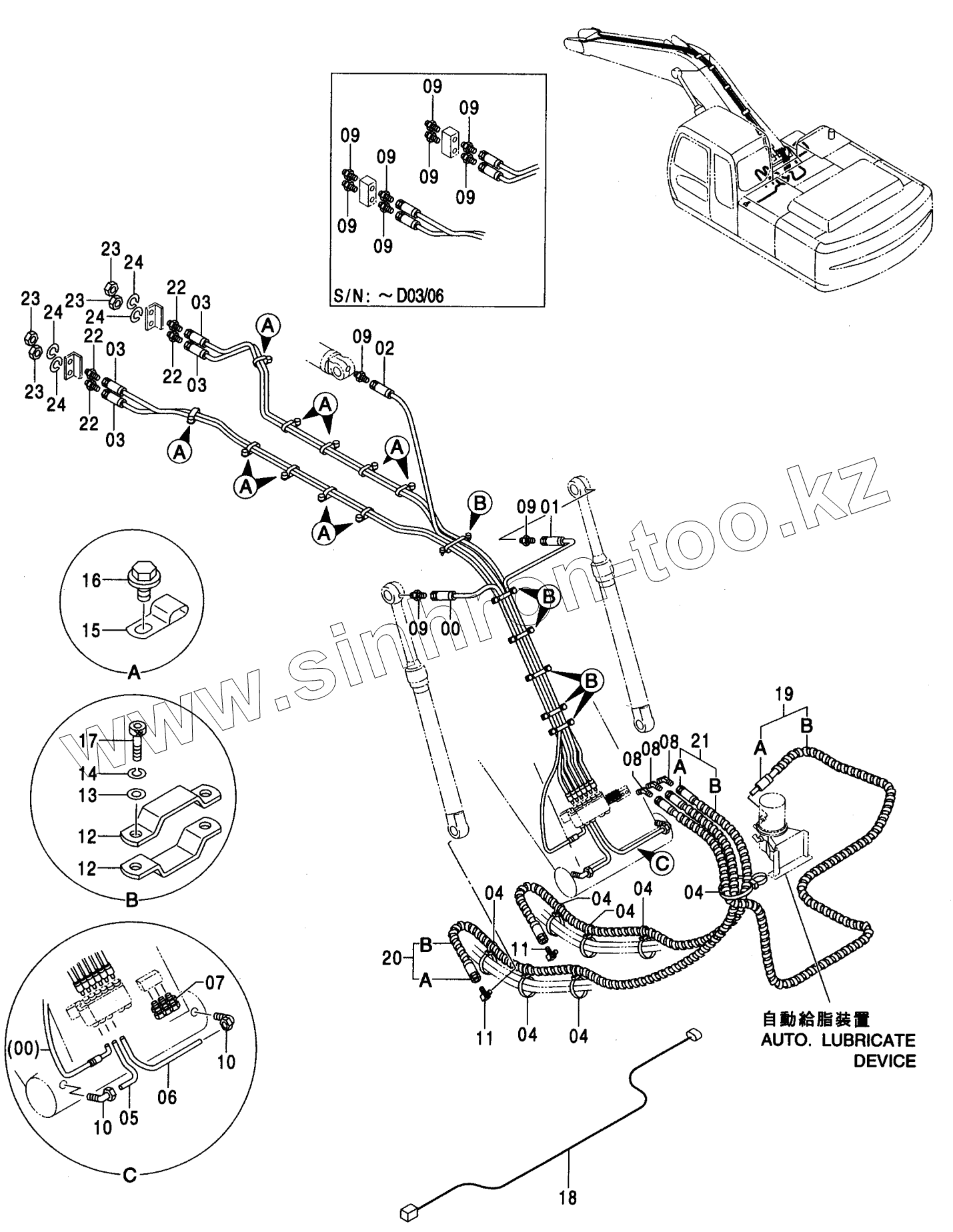 Каталог запасных частей к технике: Hitachi ZX-230. AUTO. LUBRICATE PIPING (MONO BOOM)