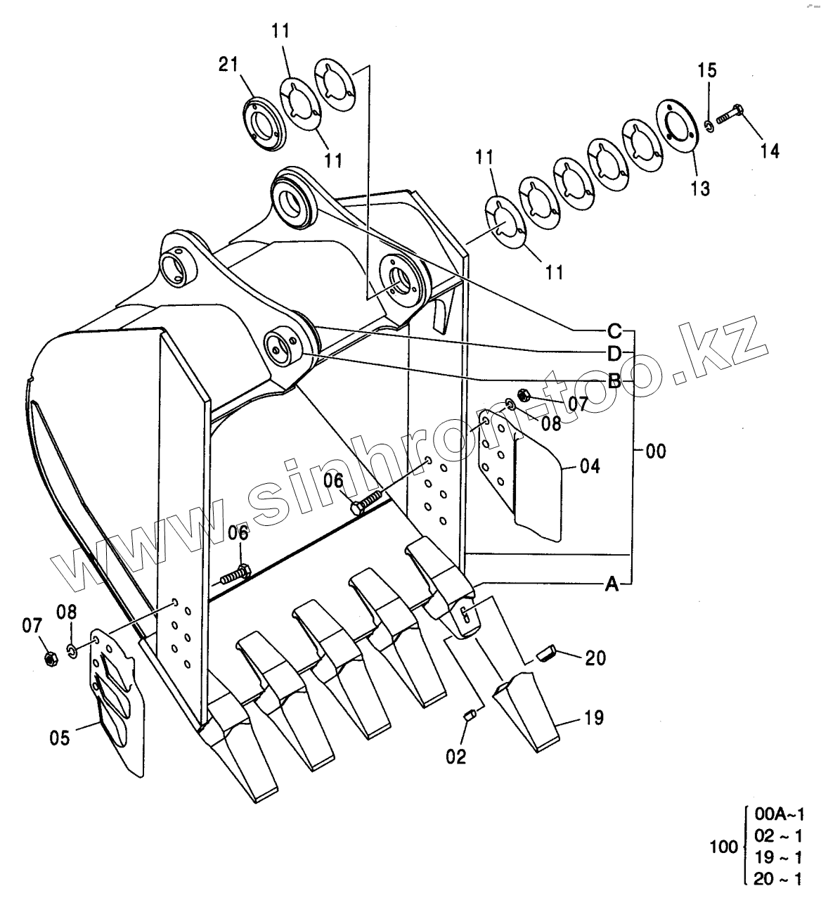 Каталог запасных частей к технике: Hitachi ZX-230. BUCKET 1.0 (JIS 94)