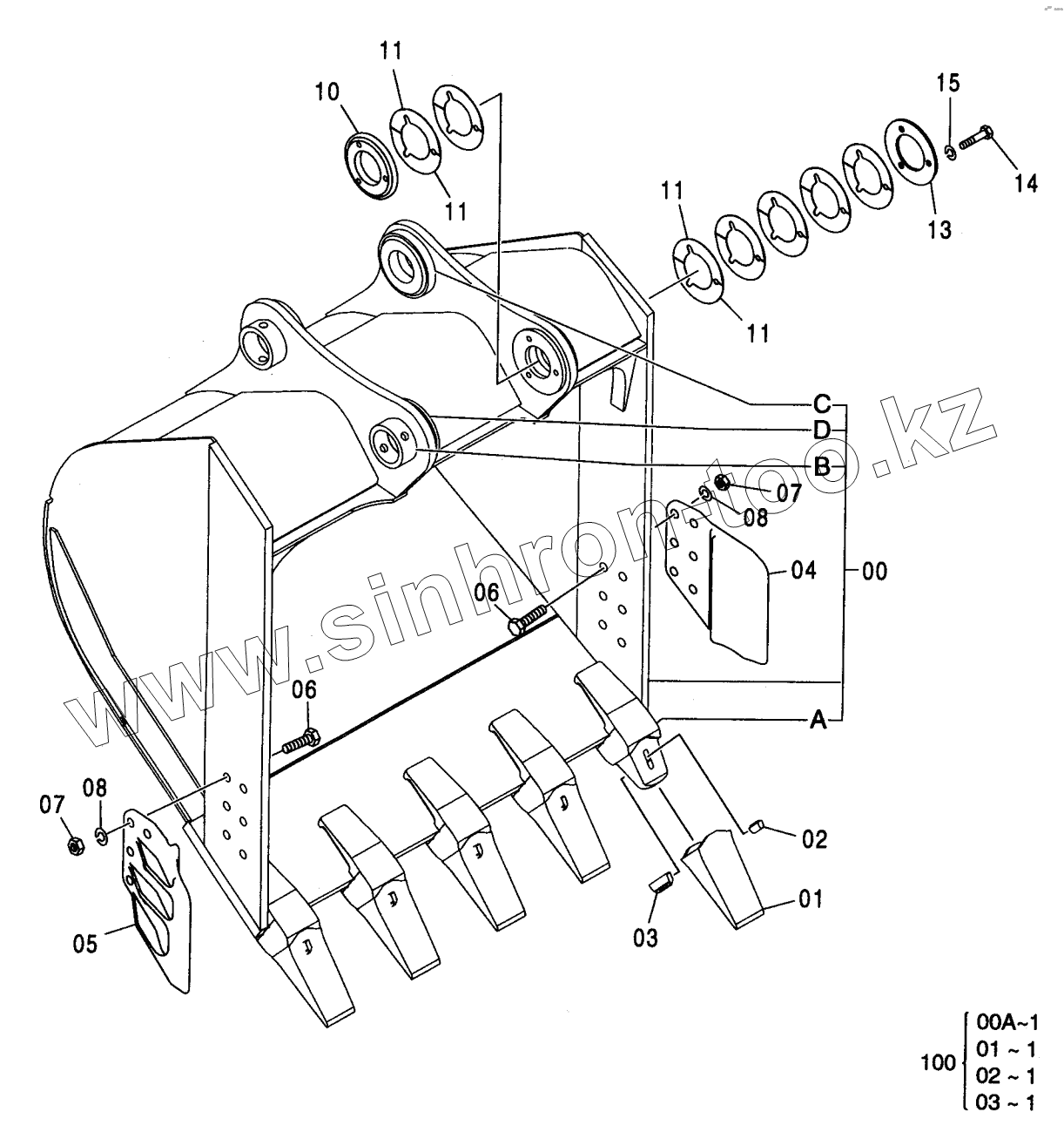 Каталог запасных частей к технике: Hitachi ZX-230. BUCKET 1.25 (JIS 94)