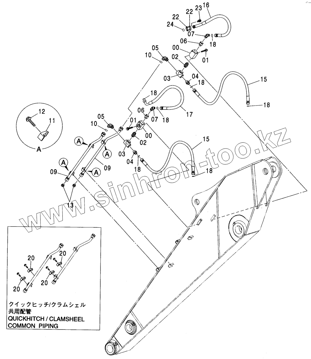 Каталог запасных частей к технике: Hitachi ZX-230. CLAMSHELL PIPING (2.96M ARM)<250>