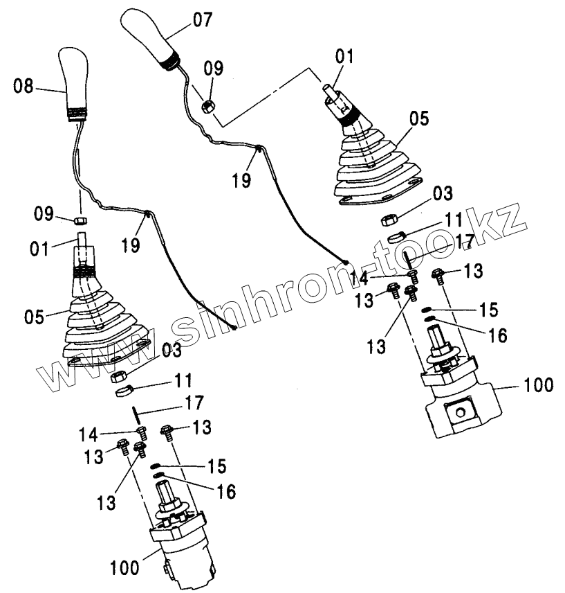 Каталог запасных частей к технике: Hitachi ZX-230. CONTROL LEVER (FRONT, SWING)