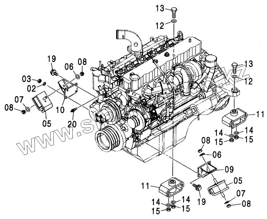 Каталог запасных частей к технике: Hitachi ZX-230. ENGINE SUPPORT