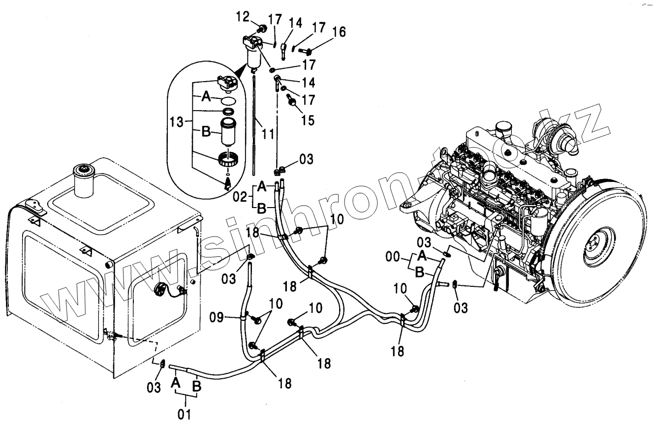 Каталог запасных частей к технике: Hitachi ZX-230. FUEL PIPING