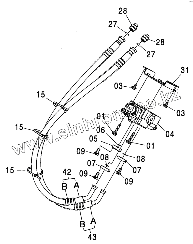 Каталог запасных частей к технике: Hitachi ZX-230. MAIN PIPING (2P-B00M)
